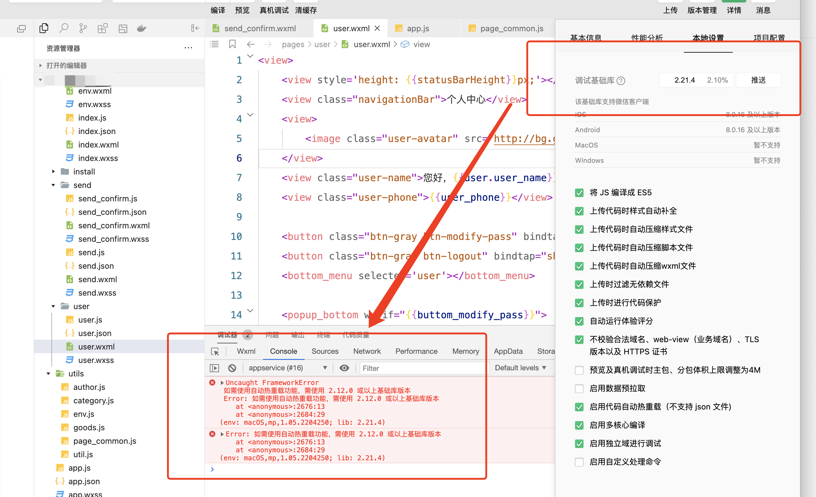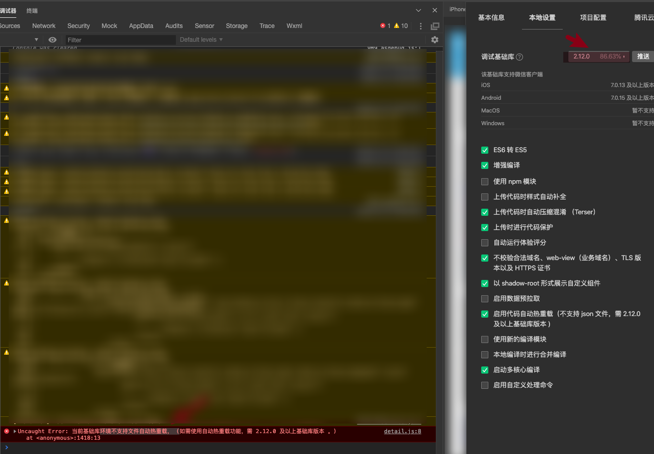 修改js后提示「当前基础库环境不支持文件自动热重载, (如需使用自动热重载功能,需 2.12.0 及以上基础库版本 。)」