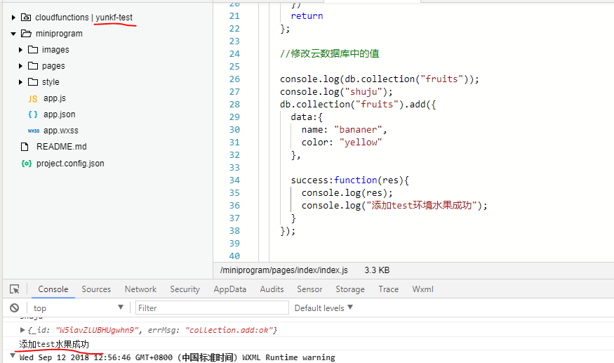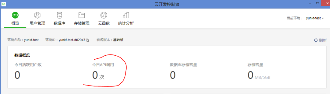 如果你的测试环境不是默认环境,用wx.cloud.init或者wx.cloud.database初始化的时候一定要填入环境id(其实用wx.cloud.init初始化就已经可以了)。