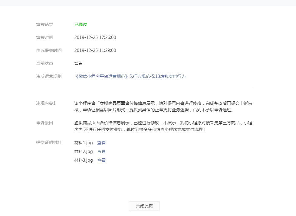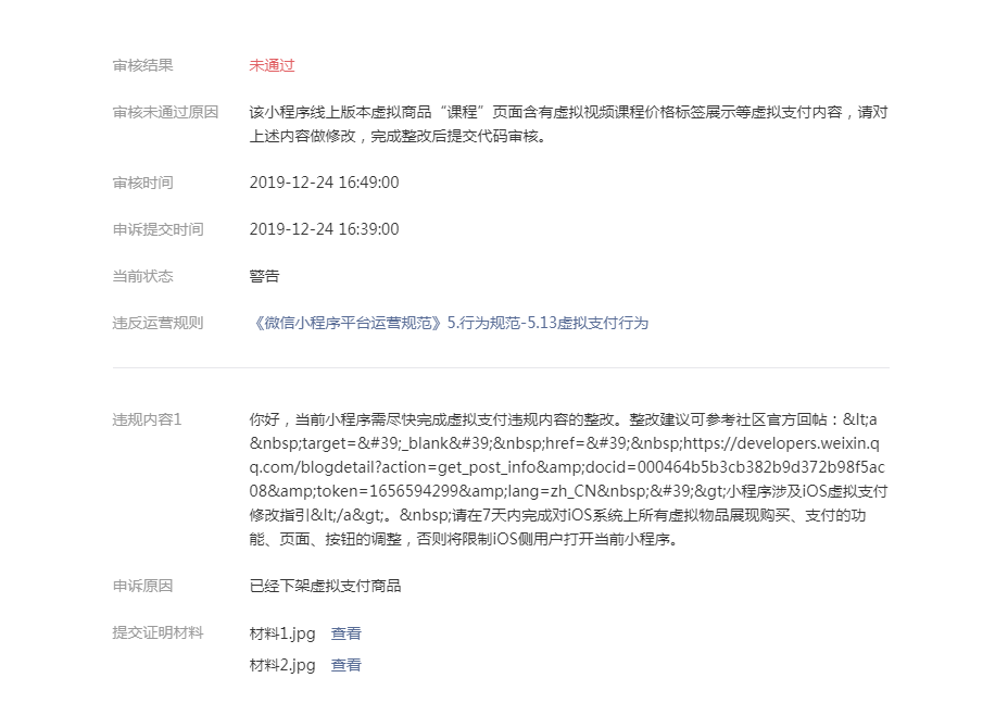 经核实 小程序已作出整改 已撤销处罚