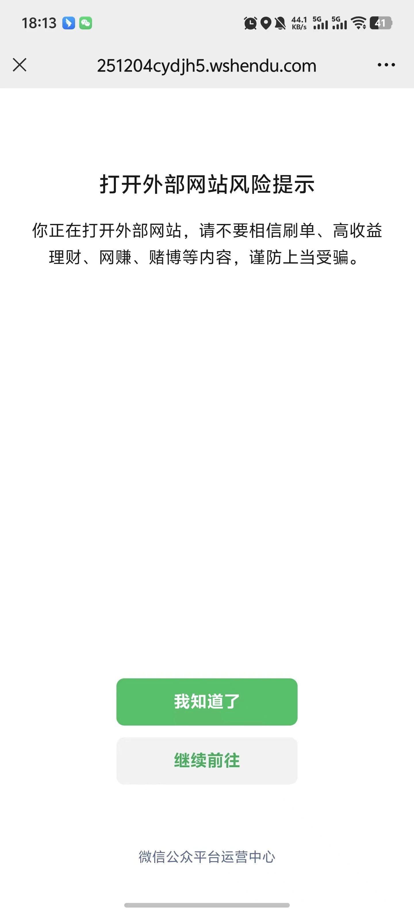 服务号底部打开链接,提示打开外部网站风险提示,要如何处理?