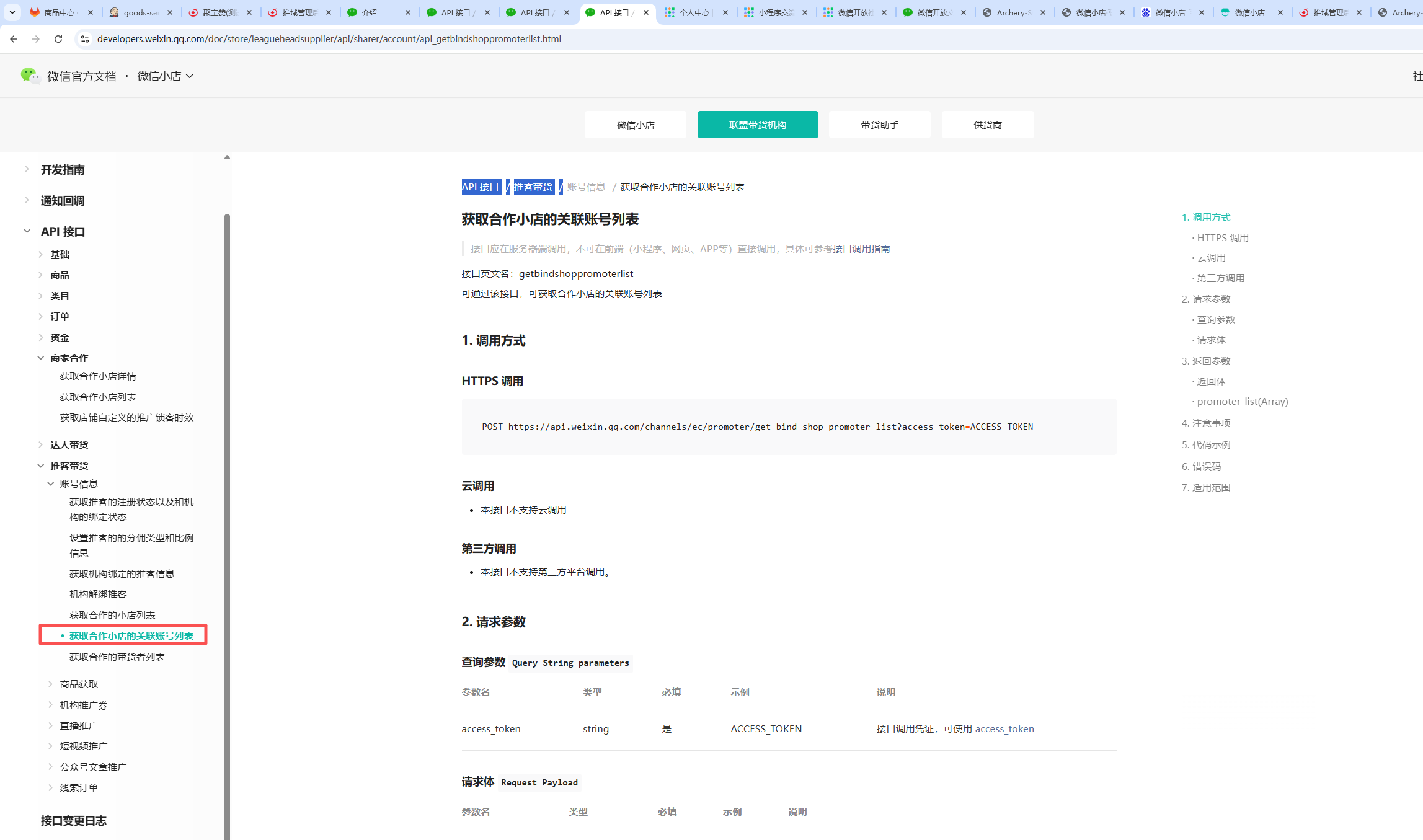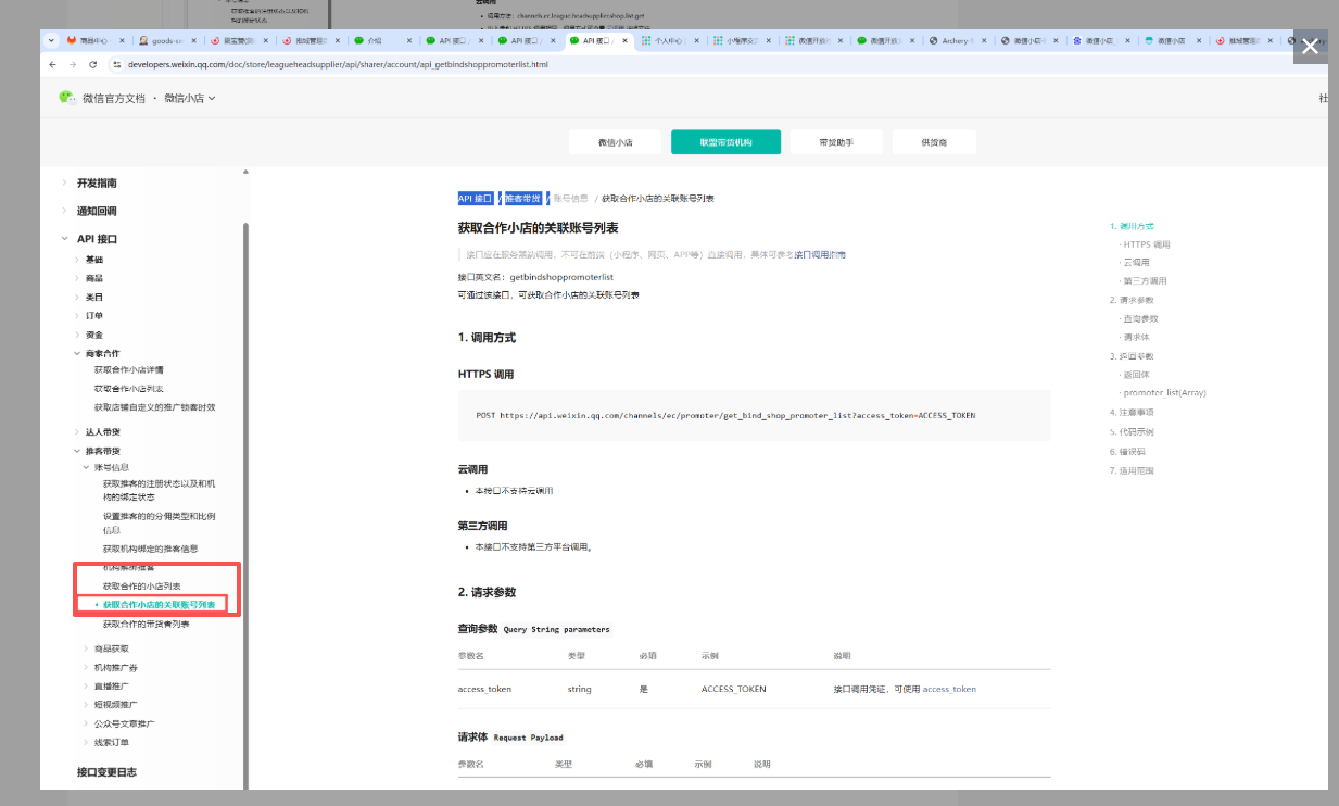 就是想知道 /商家合作 /获取合作小店列表和 推客带货 /账号信息 /获取合作的小店列表 这个有什么区别,返回的不都是合作中的小店吗