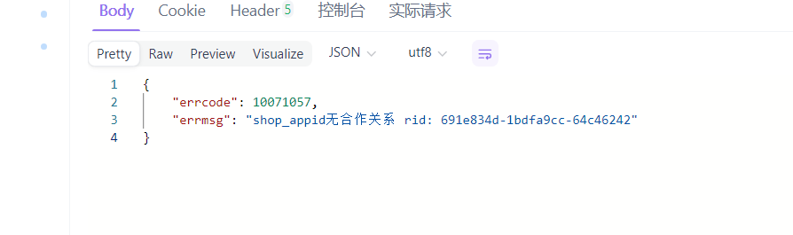 "errmsg": "shop_appid无合作关系 rid: 691e834d-1bdfa9cc-64c46242"