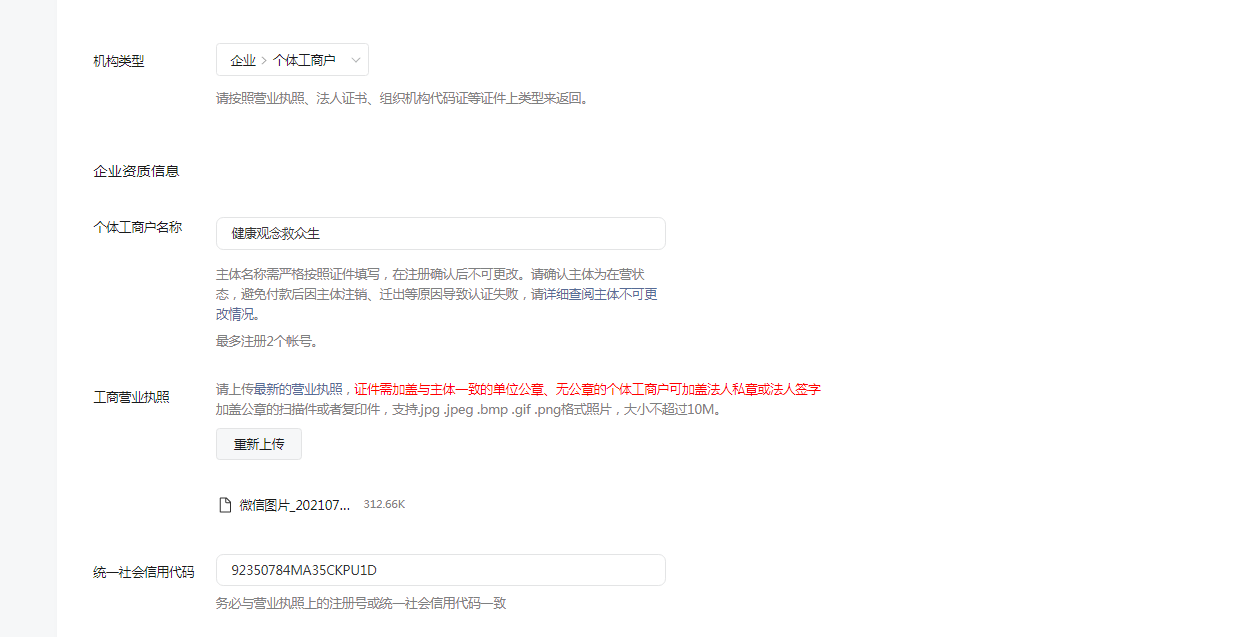 个体工商户名称那里填写的是企业名称,取名字在下一个界面