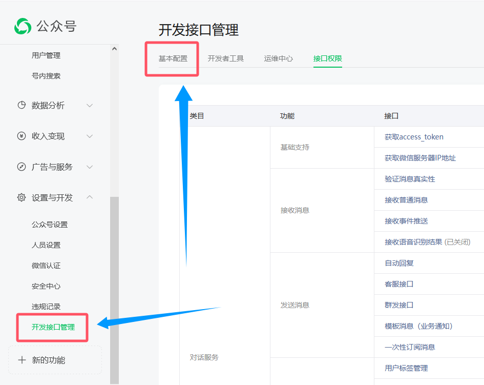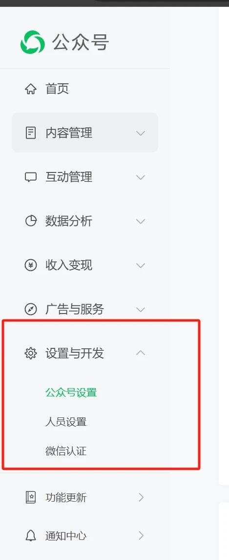 我这边新注册的公众号登录进去没有找到开发设置,我以前的老公众号开发设置也不见了。现在怎么拿公众号的Appid和私钥???