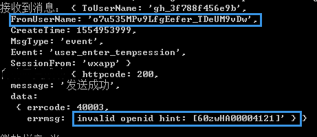 客服消息 配置过服务后 能够接收到推送过来的客服消息,然后进行回复请求时总报40003(openid不存在),但我是拿的推送过来的消息参数里的FromUserName字段值,作为回复消息请求的touser参数值,应该没问题呀。