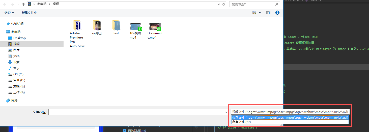 mediaType: ['video'], // 文件类型,有效值有 image 、video、mix
