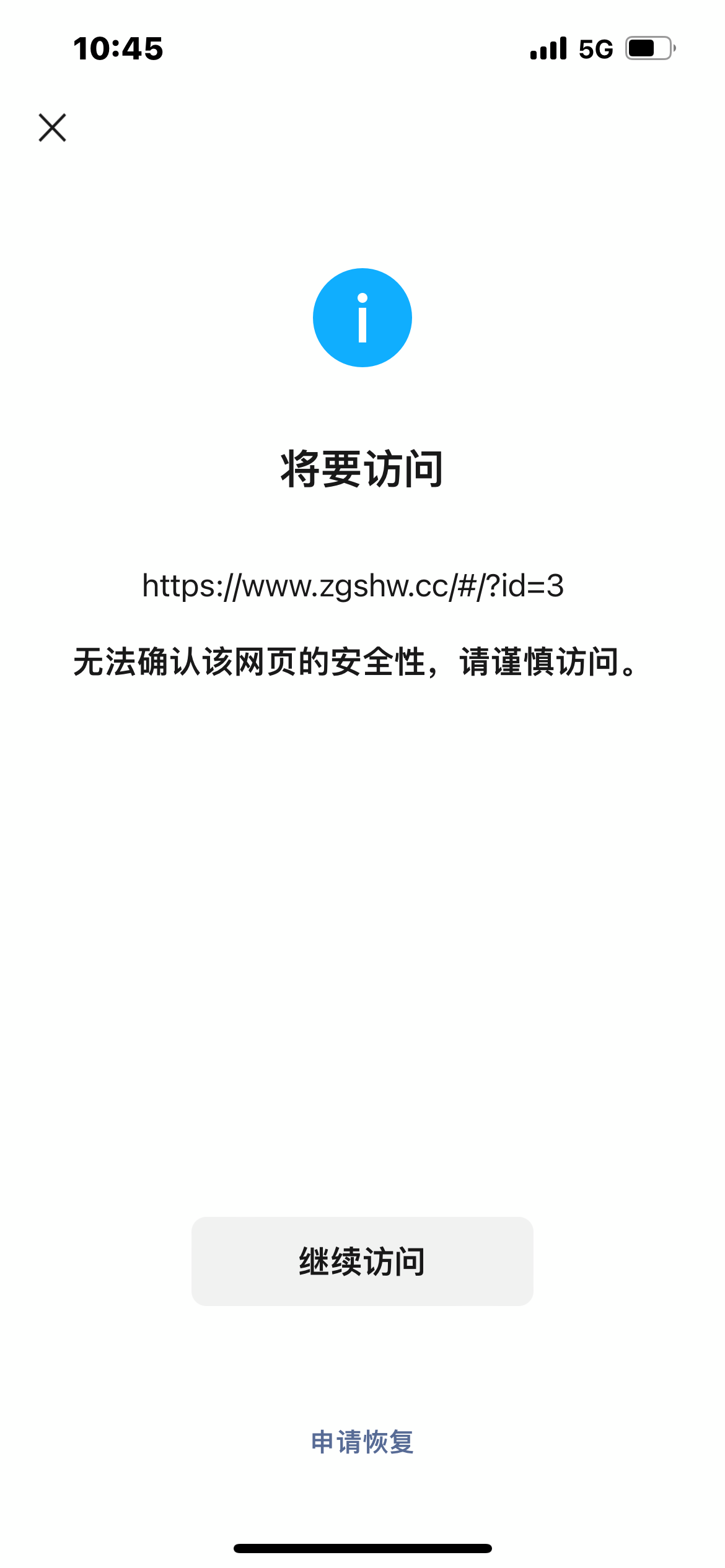 遇到在微信中打开链接,提示“非微信官方网站,请确认是否继续打开”,