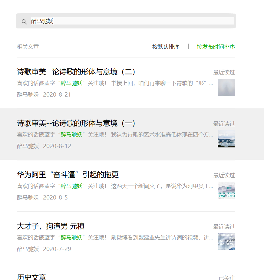 微信公众号发的文章有的搜得到有的搜不到。搜作者名如下是可以搜到的部分: