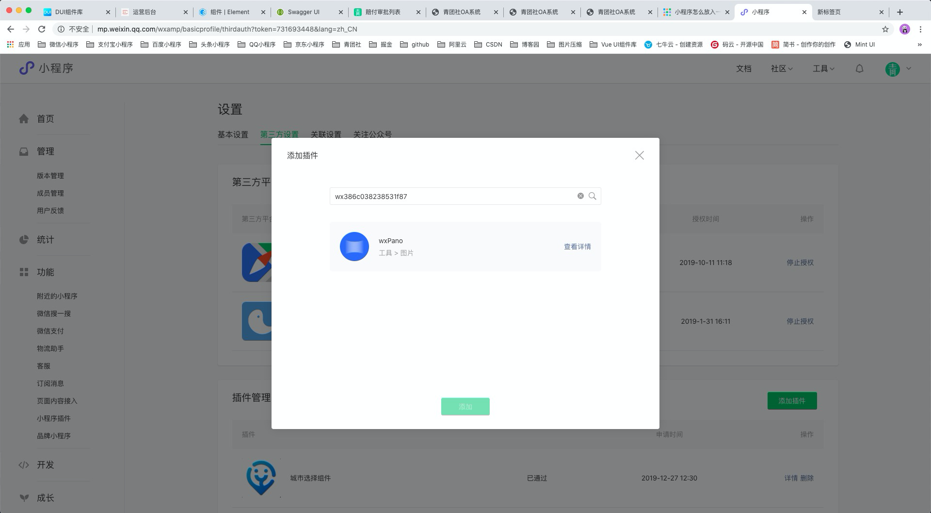 https://mp.weixin.qq.com/wxopen/pluginbasicprofile?action=intro&appid=wx386c038238531f87