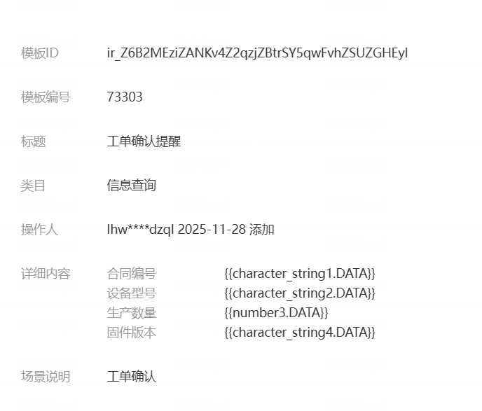 你好,根据日志看,填写的模板ID是vGrWPCci6Lr3Jh4gy63Vzhly2VhD2BHfUAQk7jVy0tU