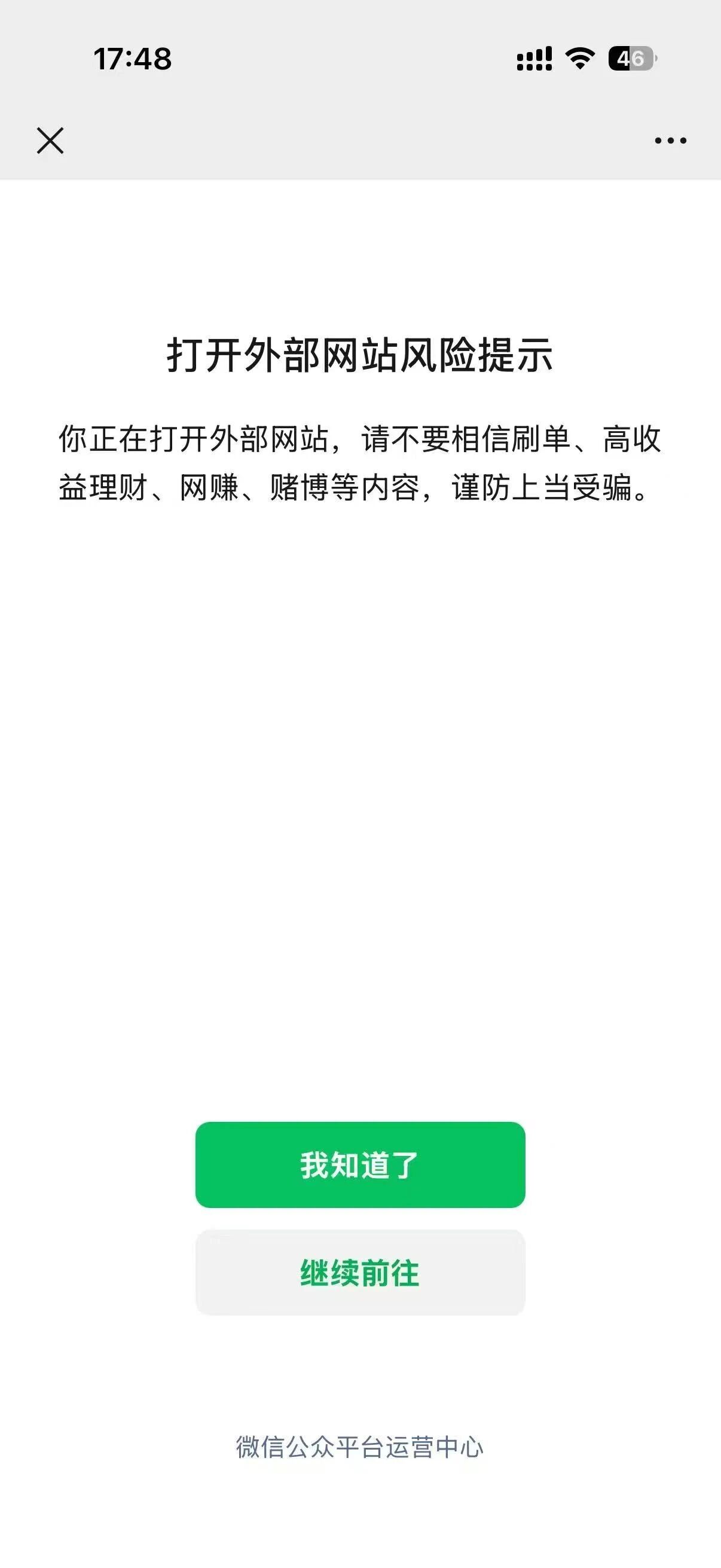 你好,平台为提升用户体验,降低用户风险,对部分用户打开外部链接的时候进行提醒