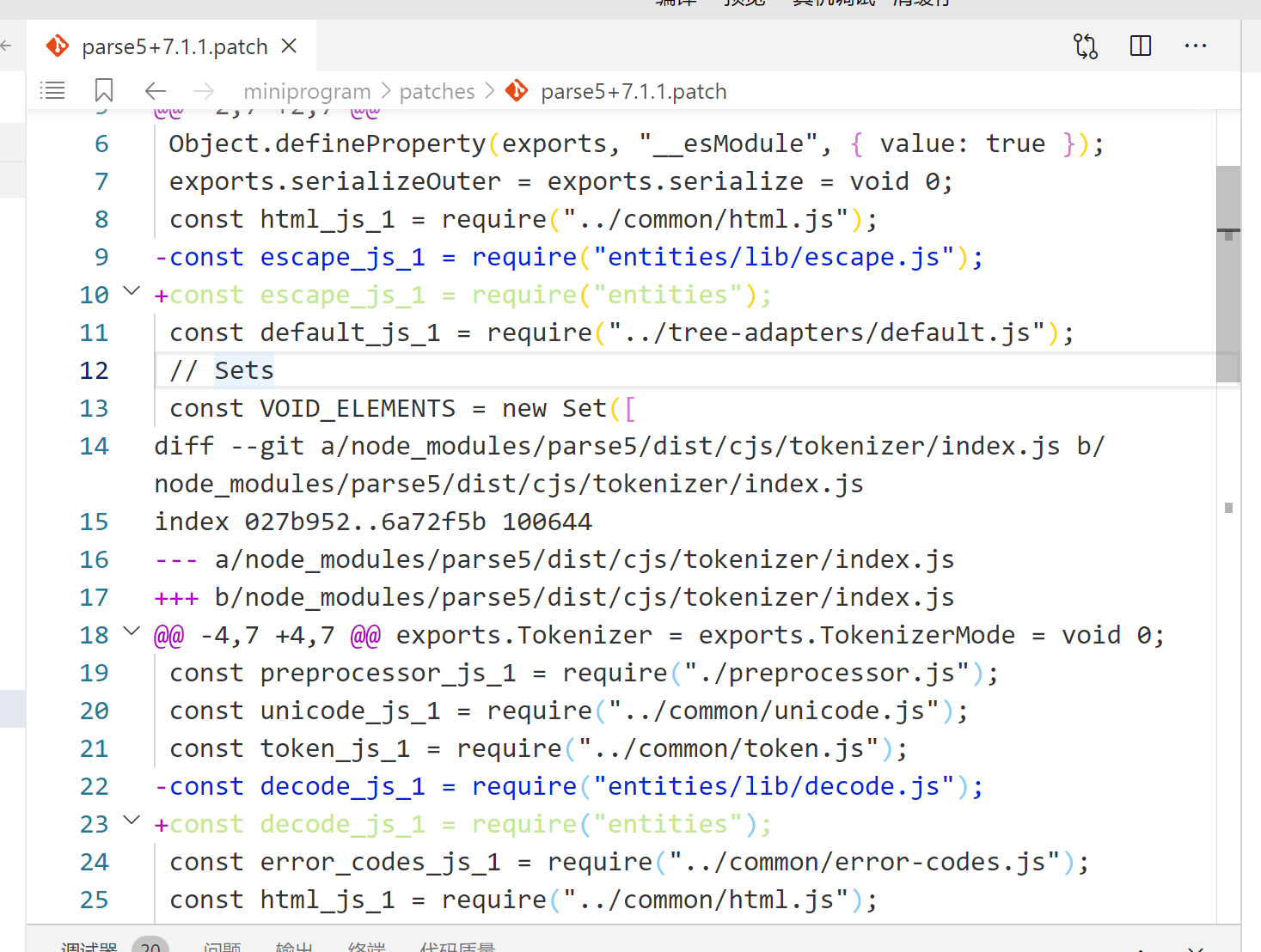 decode_codepoint是htmlparser2里面直接从entities的源文件里调函数,这些函数在构建npm时候没有暴露出来。手动exports这些还是可以解决这个报错,但是后面有冒出来调用typescript @type中event文件的问题,npm可能对于此处也没有处理。
