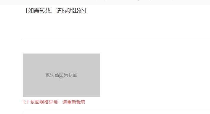 【问题描述】: 微信公众号后台新建图文类,无法设置封面图。选择图片后显示系统繁忙、必须插入一张图片,1:1封面规格异常。但是预览处没有1:1的封面可设置。