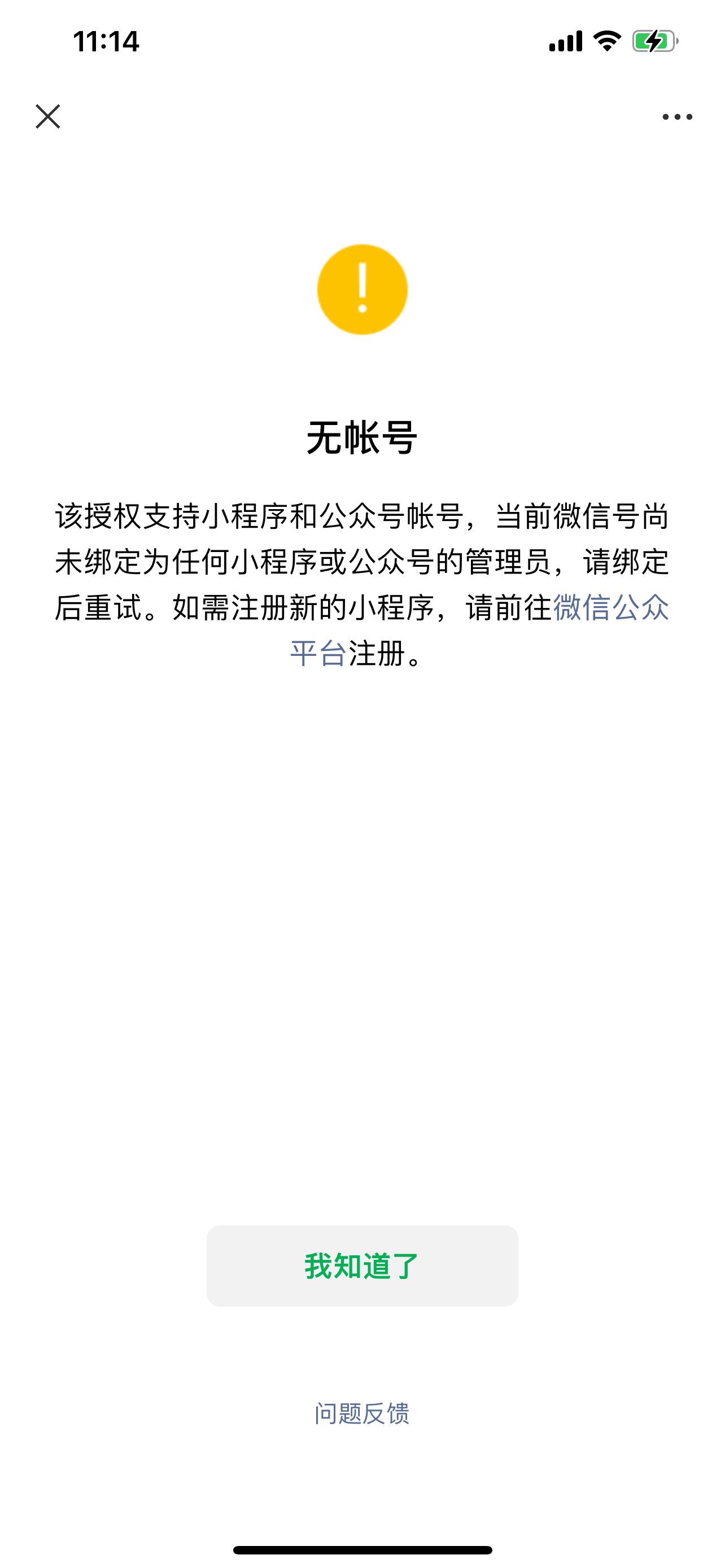 你好,请使用小程序或者公众号的管理员扫码授权,其他角色都不可以。建议前往公众号【公众平台安全助手】查一下你的微信号旗下有哪些是作为管理员的公众号小程序。(从上面的截图看,你没有作为管理员的公众号和小程序)