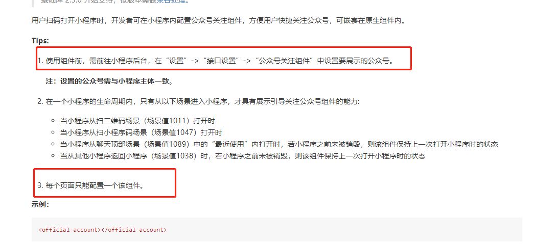 要展示的公众号已经设置,页面也只配置一个该组件。