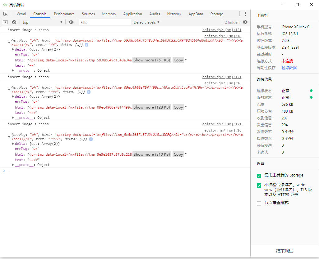 用了6s和xs max测试,在富文本编辑器editor上传图片时,getContents返回的html中图片链接地址异常的大(如图),正常的一个图片链接地址也只有几十个字节而已,IOS设备上传的图片生成的地址有几百KB。