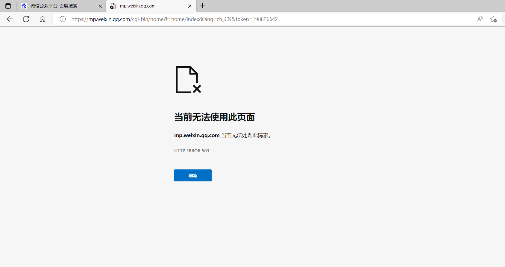 公众号无法正常登录,登录后一直加载不出来,提示不存在当前页面,换电脑、浏览器、网络都是一样的提示,坐标在重庆渝北,网络是电信的