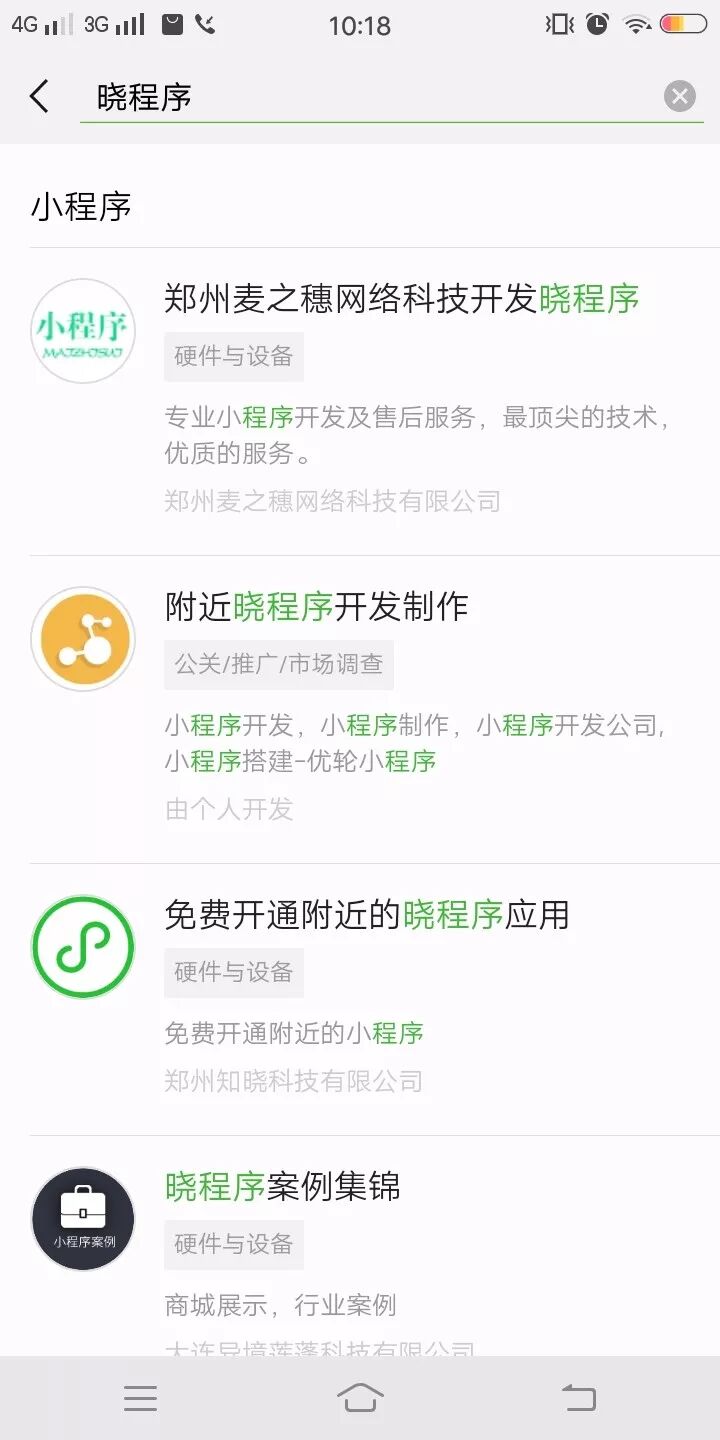以“晓程序”命名的小程序不计其数,也有“晓程序”、“小程序开发”、“晓程序”等名称,小程序搜一搜可以搜出来,如图。