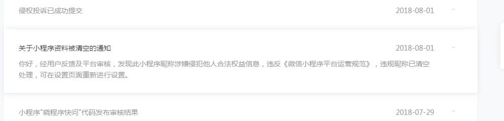 8月1日,我们突然发现名称被清空了,提前没有任何通知,通知(截图)说接到用户投诉,可一直未找到投诉或申诉入口,难道是这个业务商家不能做?