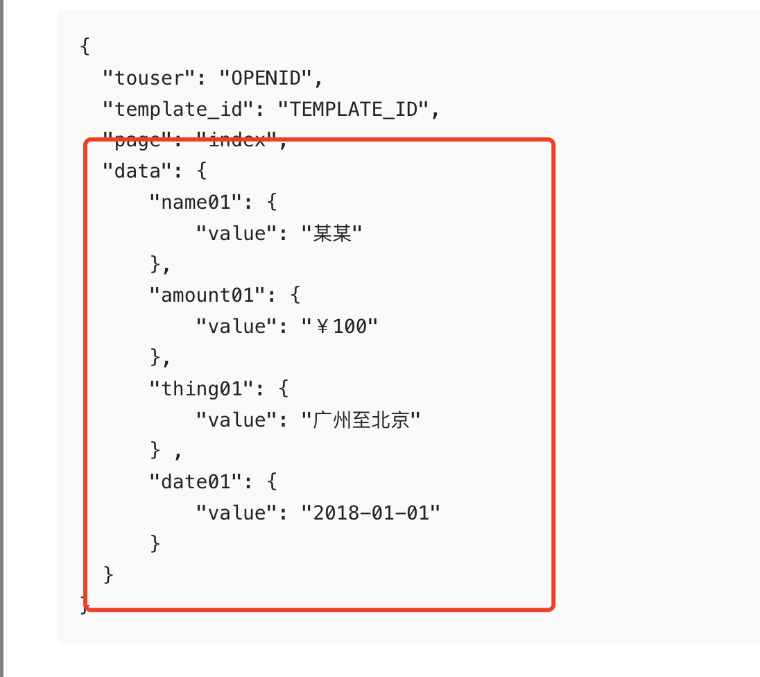 在你提供的请求参数中,"data" 对象是一个被转义的 JSON 字符串,而不是一个有效的 JSON 对象。你应该将 "data" 的值改为一个正确的 JSON 对象,而不是字符串。另外请注意,在订阅消息模板中,各个参数的长度有限制,确保你的参数值不超过限制。