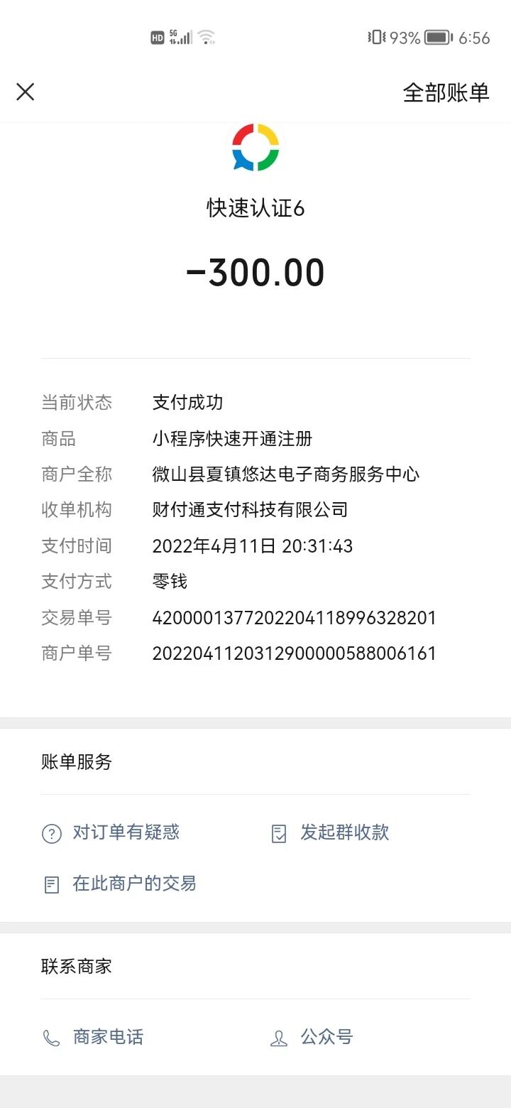小程序注册失败了不退钱,商家不回复,电话打不通