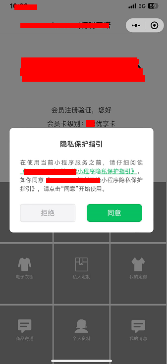 先弹出隐私保护指引,用户点到注册页面,需要获取地理位置信息来给顾客选择最近的店铺位置的时候再申请权限