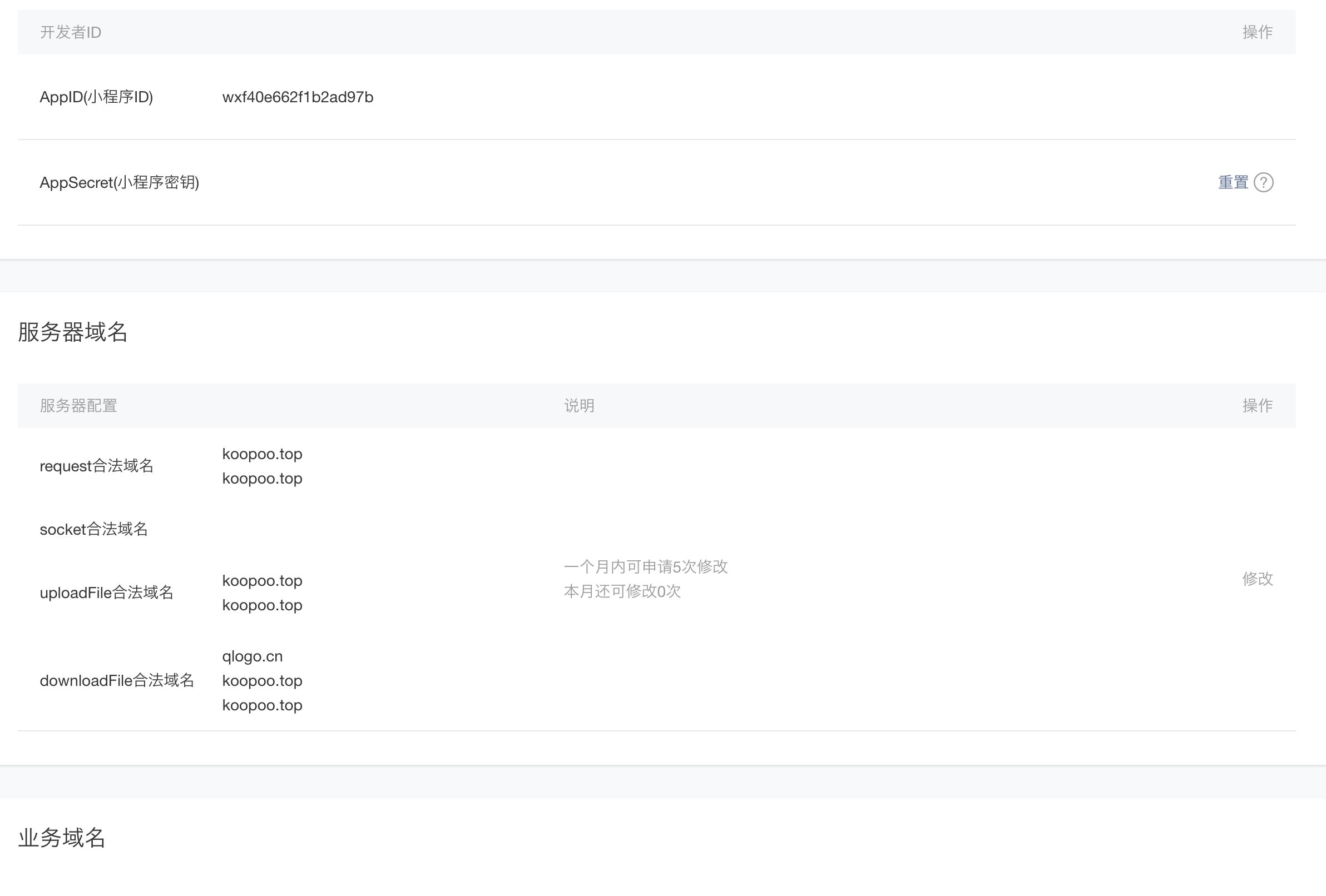 如上图,管理后台服务器域名显示异常,修改也不生效。5次机会都用完了。