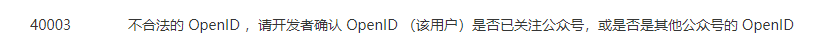 详细说下情景: 首先是拉取某个公众号的所有粉丝(拉取历史关注过公众号的粉丝),然后再根据返回的openid获取用户详情,执行到一半,部分返回的openid成功,比如:o1CP-509hGtZ67UZQDpjBHbtSWaM,o1CP-57x8wZuPq4OtaWrO2cF12pE等等,这几个都是成功的,但上面这个就一直失败。