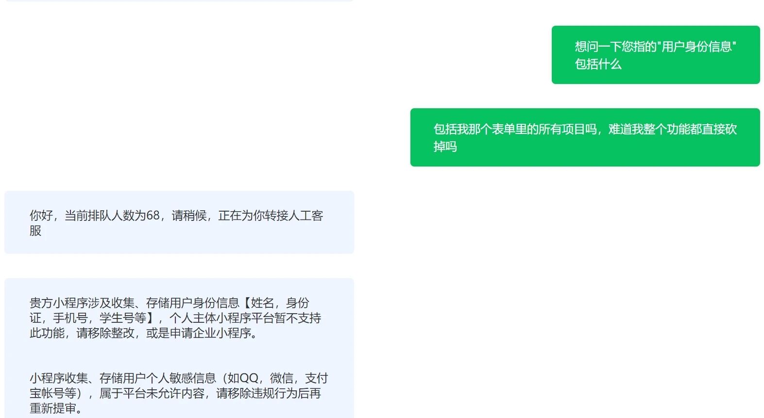 可是我在下面都放了个单选框了告诉用户我不存储你的信息,只是作为验证而已(我的是一个线上线下的小程序,线上小程序用于查询线下信息的状态)