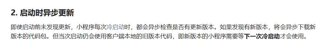 冷启动时会异步检查是否有新版本。假如APP在冷启动时,线上没有新版本(未发布),APP保持运行一段时间,这时线上发布新版本,那APP就无法检查到新版本并且更新了。很多情况下,我们要发布一个修复BUG的新版本,如果客户已经在运行APP,那么他就无法及时收到新版本推送并更新,仍然运行上一个有BUG的版本。这个问题应该怎么解决呢?