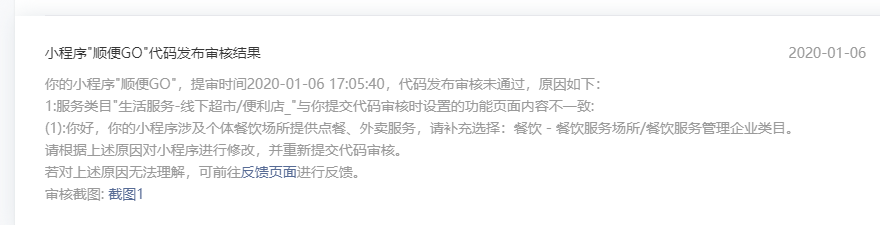 我们的小程序顺便GO提交审核,最新反馈回来一个问题,需要我们补充类目:餐饮-餐饮服务场所企业类目。但我们公司只提供无人零售机,不生产便当,便当是通过第三方商家提供,也没有线下的场所,用户只通过扫码开门无人机柜,取餐后完成了购买流程。小程序主体的问题已经上传资料认证了,请问变更完主体后补充类目:商家自营--食品,商家自营--酒/盐。就可以了吧?谢谢