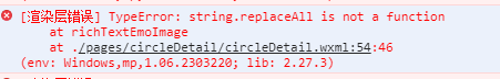 最新版安卓微信客户端及微信开发者工具,使用了同一版本号的基础库(最新版2.15.0),代码中使用了String.replaceAll()方法,开发者工具未作出任何错误提示,但是一旦推送体验版,在微信客户端体验时会报错TypeError。请尽快修复开发者工具与微信客户端行为不一致问题