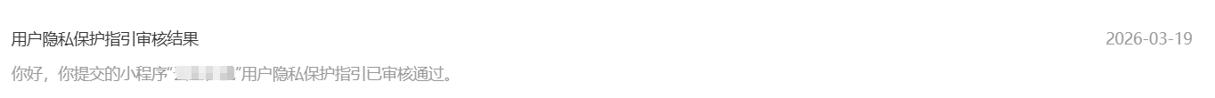 小程序后台账号设置页面的【用户隐私保护指引】更新的是现网版本,若你的小程序还没有发布上线,即你小程序还没有现网版本的【用户隐私保护指引】,审核通过是不会生效的,页面也不会显示你之前填写过的内容;需要将小程序发布上线才可以在账号设置页面这里更新【用户隐私保护指引】。