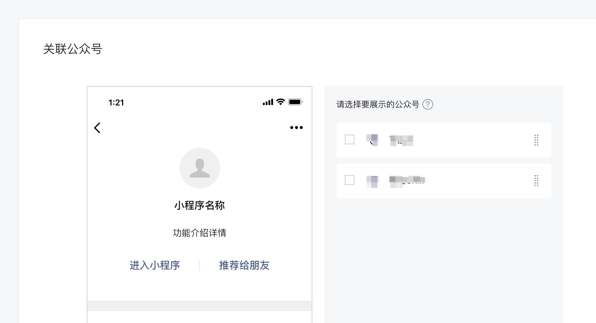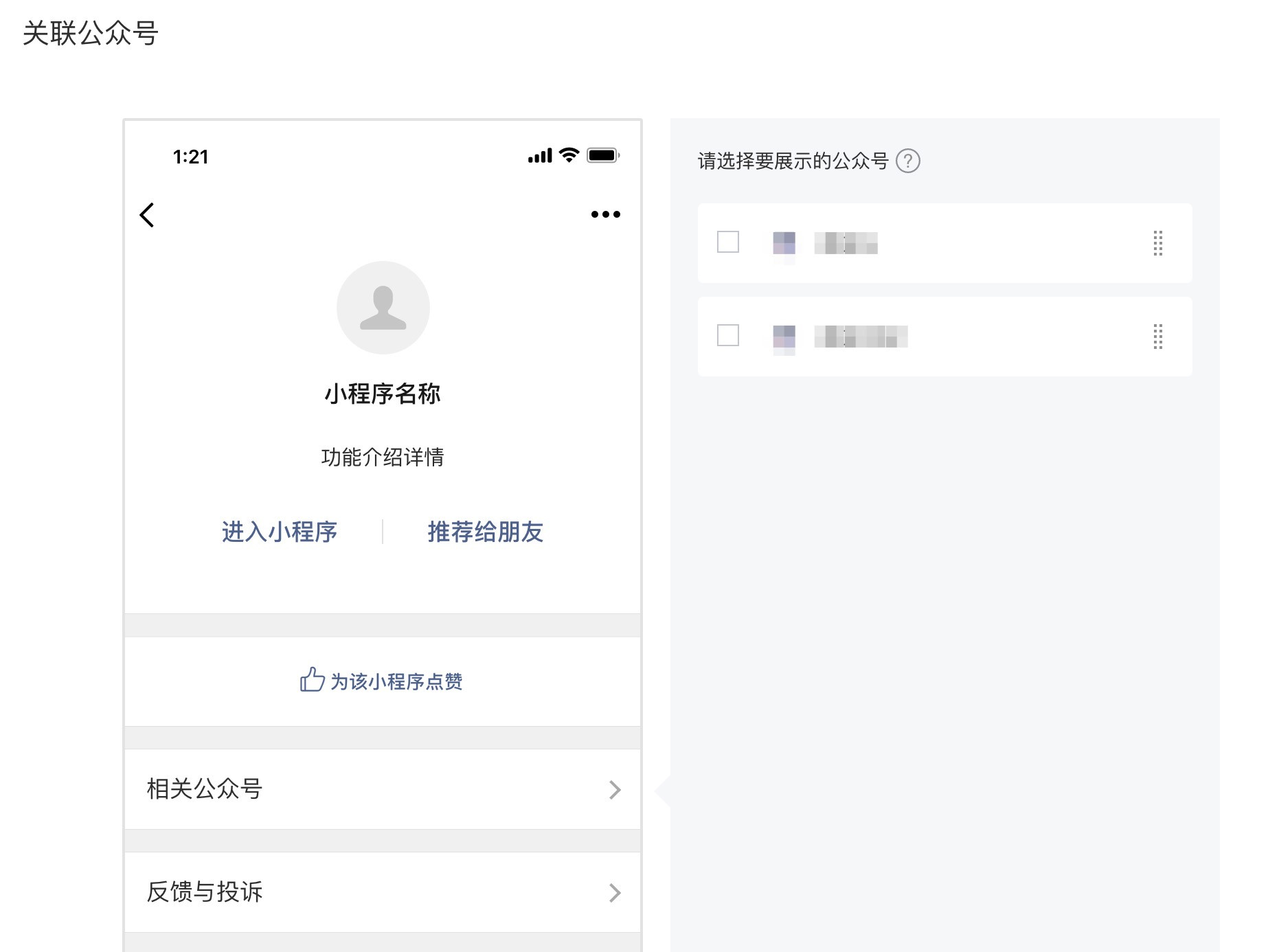 小程序profile“相关公众号”不显示关联的公众号,改为展示同主体的公众号(由小程序开发者自己选择)