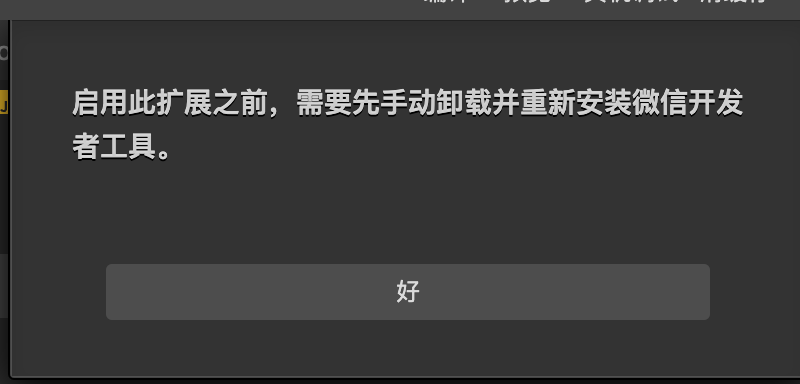最近使用微信开发者工具,启用扩展”微信小程序AI编程助手“,提示:需要先手动卸载井重新安装微信开发者工具,重新安装,也不行。