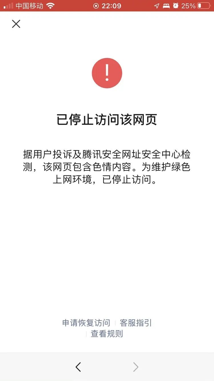 公众号里提示网页被拦截,已有一周,工作时间正常,非工作时间会随机弹出已停止访问该网页
