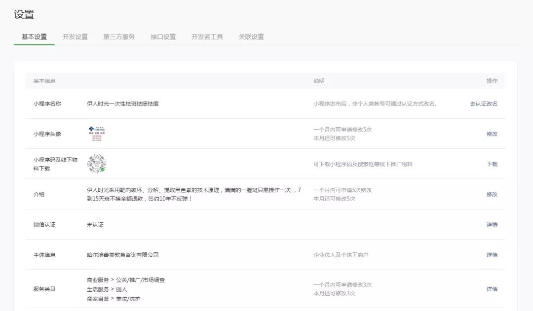 小程序名称:伊人时光一次性祛斑祛痣祛痘
