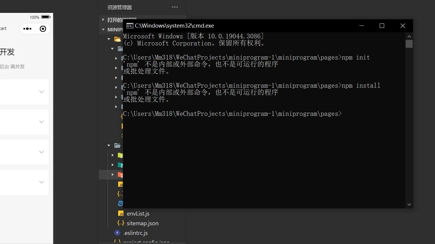 检查是否安装了,node,npm,如果安装了,设置命令权限访问