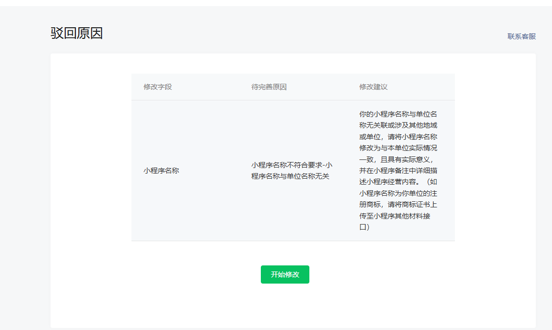 小程序名称使用营业执照全称审核通过了,但是备案这边驳回了,显示备案原因是:小程序名称不符合要求-小程序名称与单位名称无关?具体是什么原因?需要重新改名么?怎样命名才能通过呢?