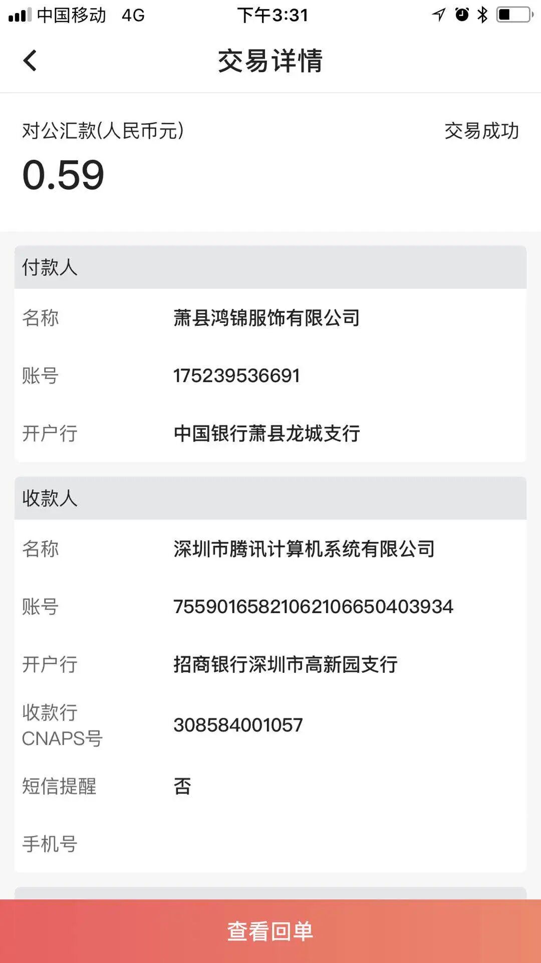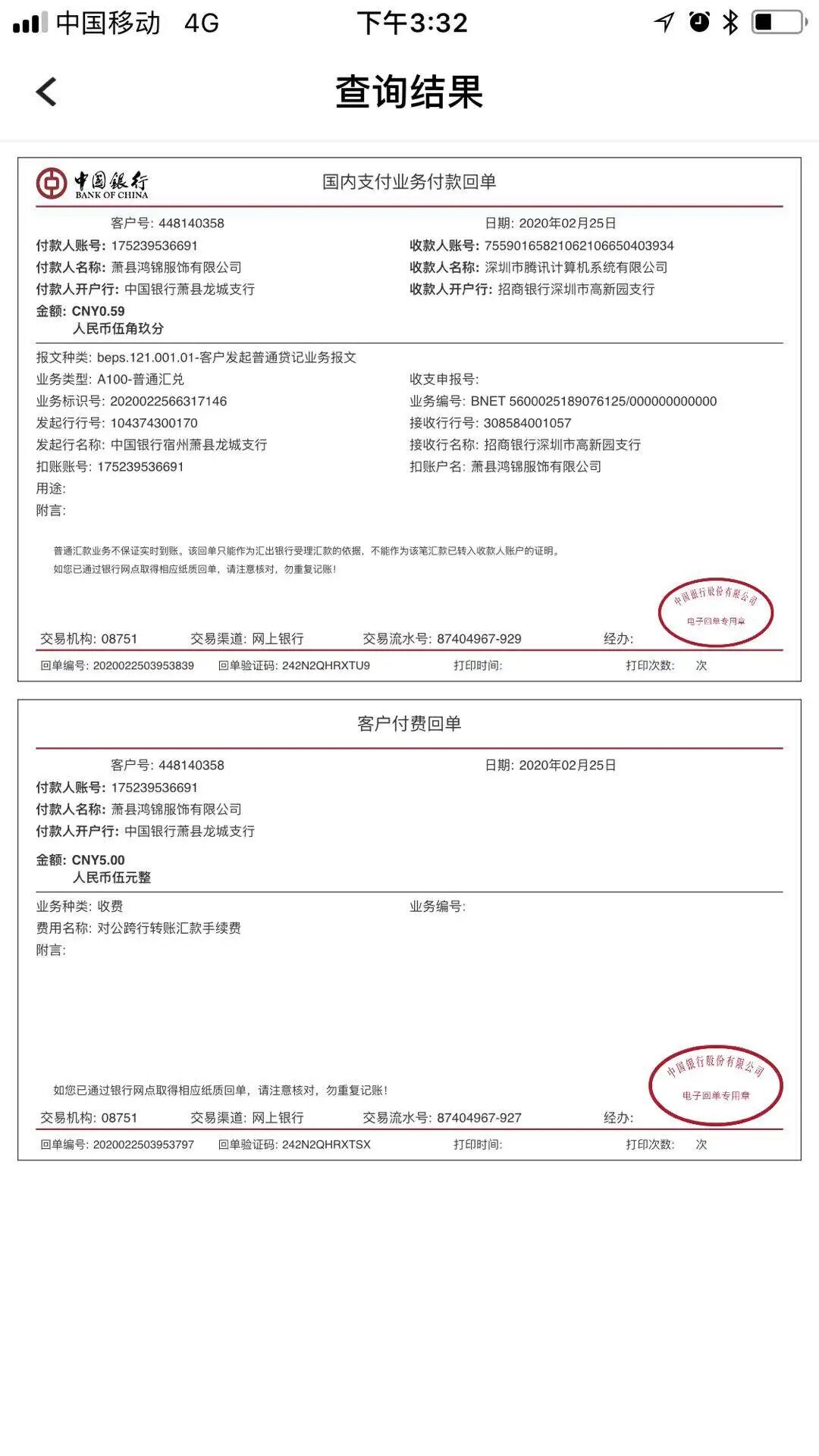提供打款回执单以及收到的打款通知信息截图