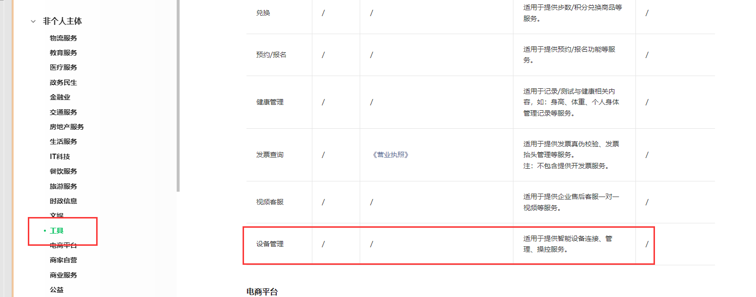 小程序类目适用范围可参考:https://developers.weixin.qq.com/miniprogram/product/material/#%E7%94%B5%E5%95%86%E5%B9%B3%E5%8F%B0"