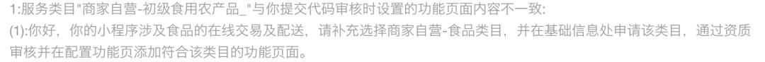 你好,经核实,贵方小程序最新提审版本无需补充食品类目,但小程序名称含关键词“社区”,涉及资质服务,请补充社交-社区/论坛类目或删除名称中命中的关键词“社区”。