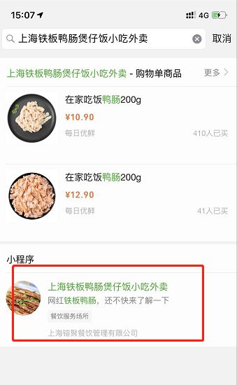 小程序名称:上海铁板鸭肠煲仔饭小吃外卖