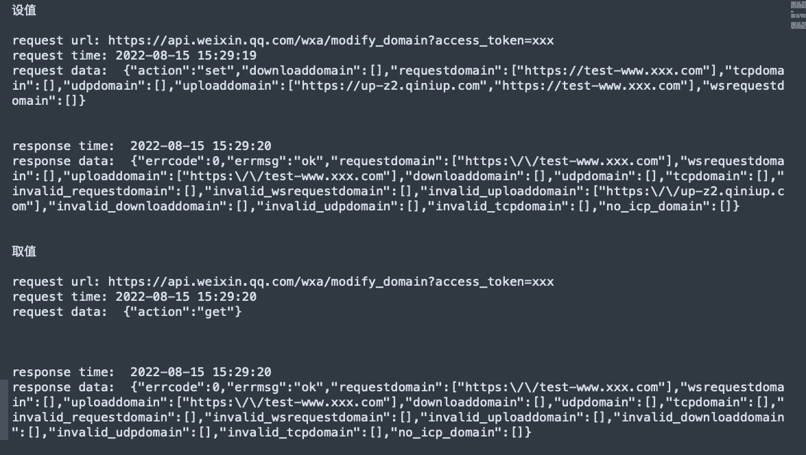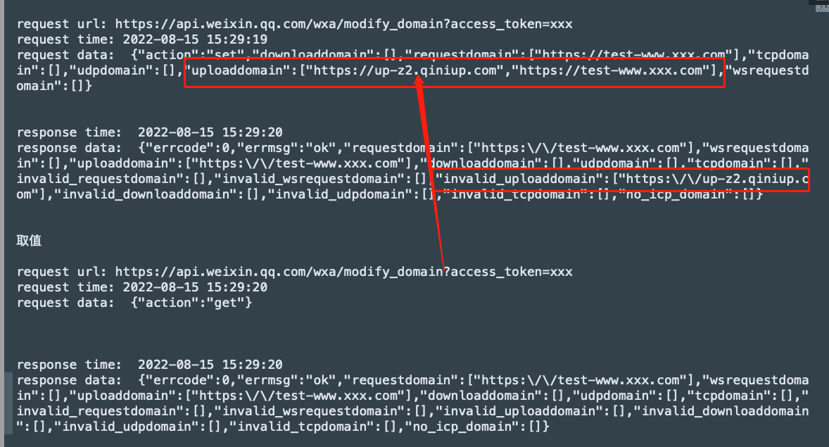 调用设置接口正常,但是 action 设为 get 再去调接口时,返回的 uploaddomain 和 downloaddomain 为空,请问这是什么问题?