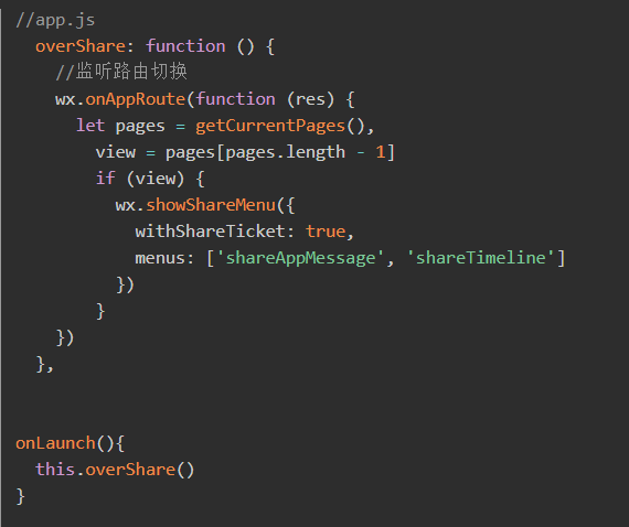 wx.showShareMenu如果想要每个页面都能分享,就需要每个页面都设置一遍,有没有方法可以一次设置为全局开启?