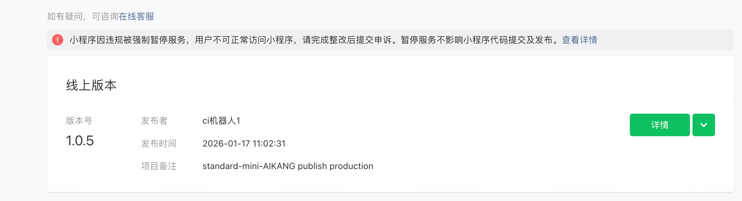 首先说明小程序是一个服务类小程序,首页进入是看不到内容的,只有用户在扫码后用对应的业务 id 才能进行服务。其次,在收到封禁通知后,已对小程序首页也进行整改,审核也通过了,目前申诉一直卡着,导致小程序无法使用,人工客服也找不到,如何处理,请官方说明一下