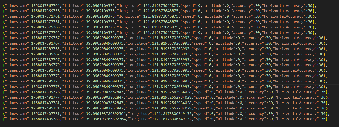获取的实时经纬度数据如下: