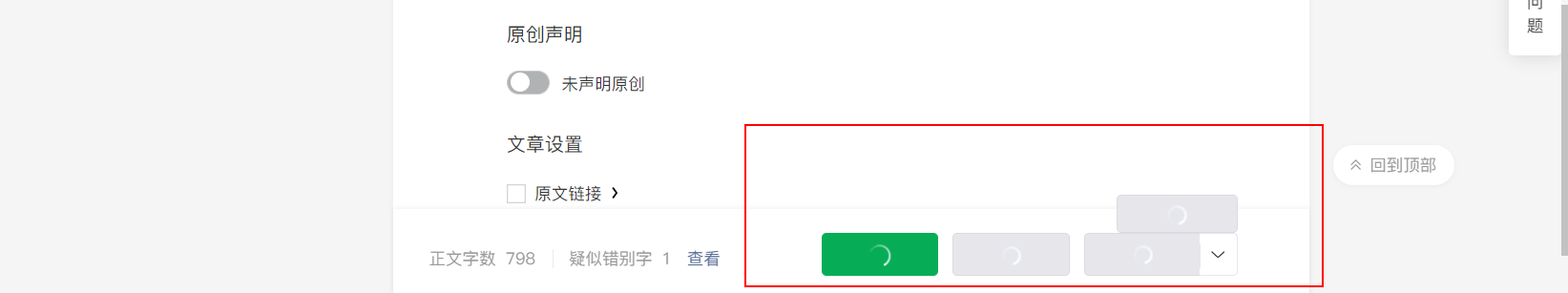 【问题描述】: 从昨天下午到现在使用了多个浏览器(safari、chrome、火狐),切换了不同网络,每次保存文章的时候一直在转圈,无法进行保存、群发、预览,不知道什么原因