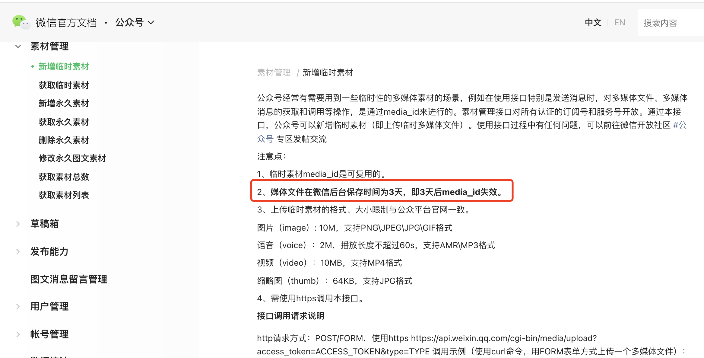 2.临时素材不是用来插入图文的,不能用于群发。临时素材是用在发消息等场景的。临时素材只提供了media_id以及下载图片的能力,是无法返回url。永久素材才会返回url。