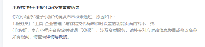 小程序名叫"橙子小报",审核不通过,说含有"XX报"名称的小程序需要添加时政信息类目,但我们小程序又不是新闻报道之类的,不应该添加,怎么办?求解答!